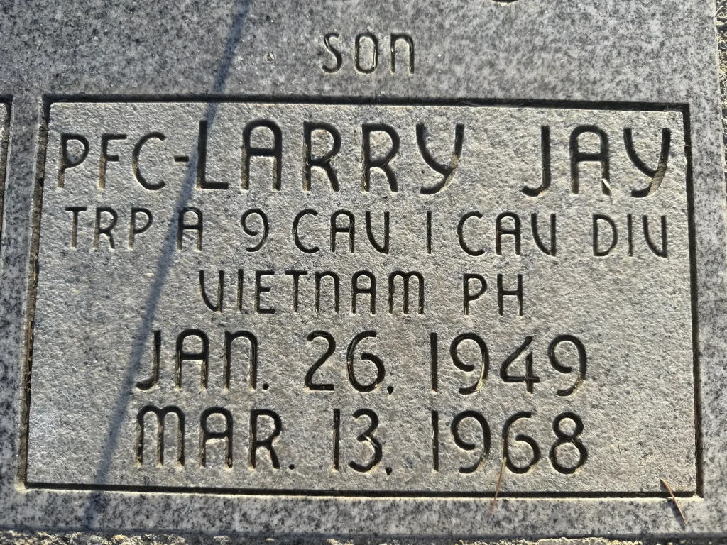 After the Tet Offensive, he was transferred to another unit. When he passed, he served with Company A, 1st Battalion, 327th Infantry Regiment, 1st Brigade, 101st Airborne Division. He was killed by shrapnel while out on patrol. It was his first time out with this unit. The last letter he wrote ended with, “I hear the copters coming in to pick us up to go on patrol.” (from his wife’s account)